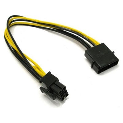 Переходник позволяющий подключать видеокарту с 6-pin разъемом доп. питания к одному 4-pin разъему блока питания. Длина 24 см.